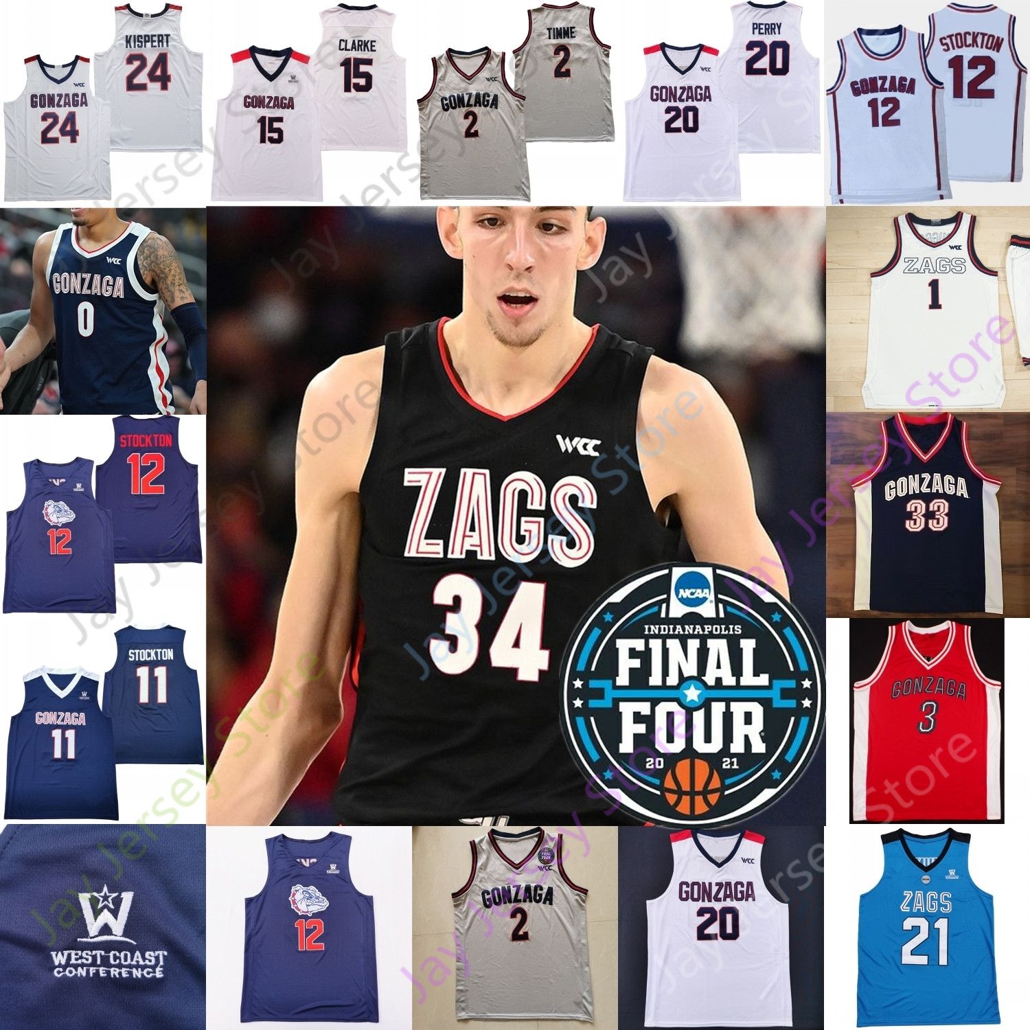 2021 Final Four 4 Gonzaga Bulldogs Basketball Jersey Ncaa College Stockton Drew Timme Watson Andrew Nembhard Perry Chet Holmgren Hunter Sallis Nolan Hickman From Davidjersey 23 17 Dhgate Com
